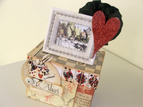 A couple projects using Alice in Wonderland collage packs from Tweety Jill. The mini frame and glitter chipboard are from Melissa Frances.