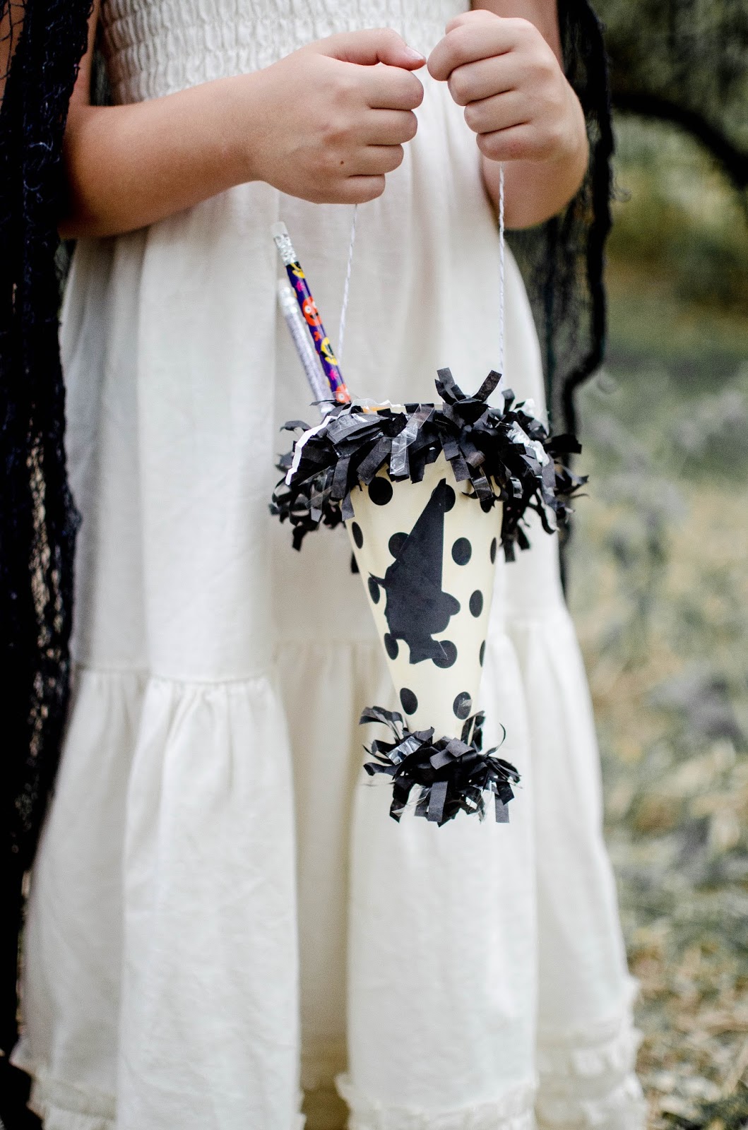 Each little guest received a witch themed tussie mussie filled with Halloween goodies to take home. They were filled with Halloween pencils, stickers, stamps, spider rings and glow sticks.