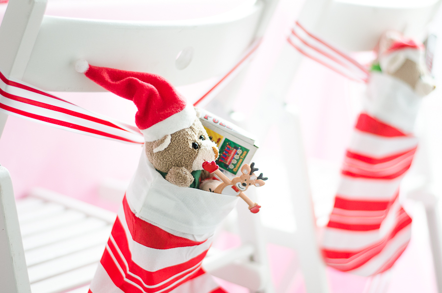 Candy cane stockings were hung with care and were filled with the cutest stocking stuffers like plush teddy bears, Christmas puzzles and reindeer toys.